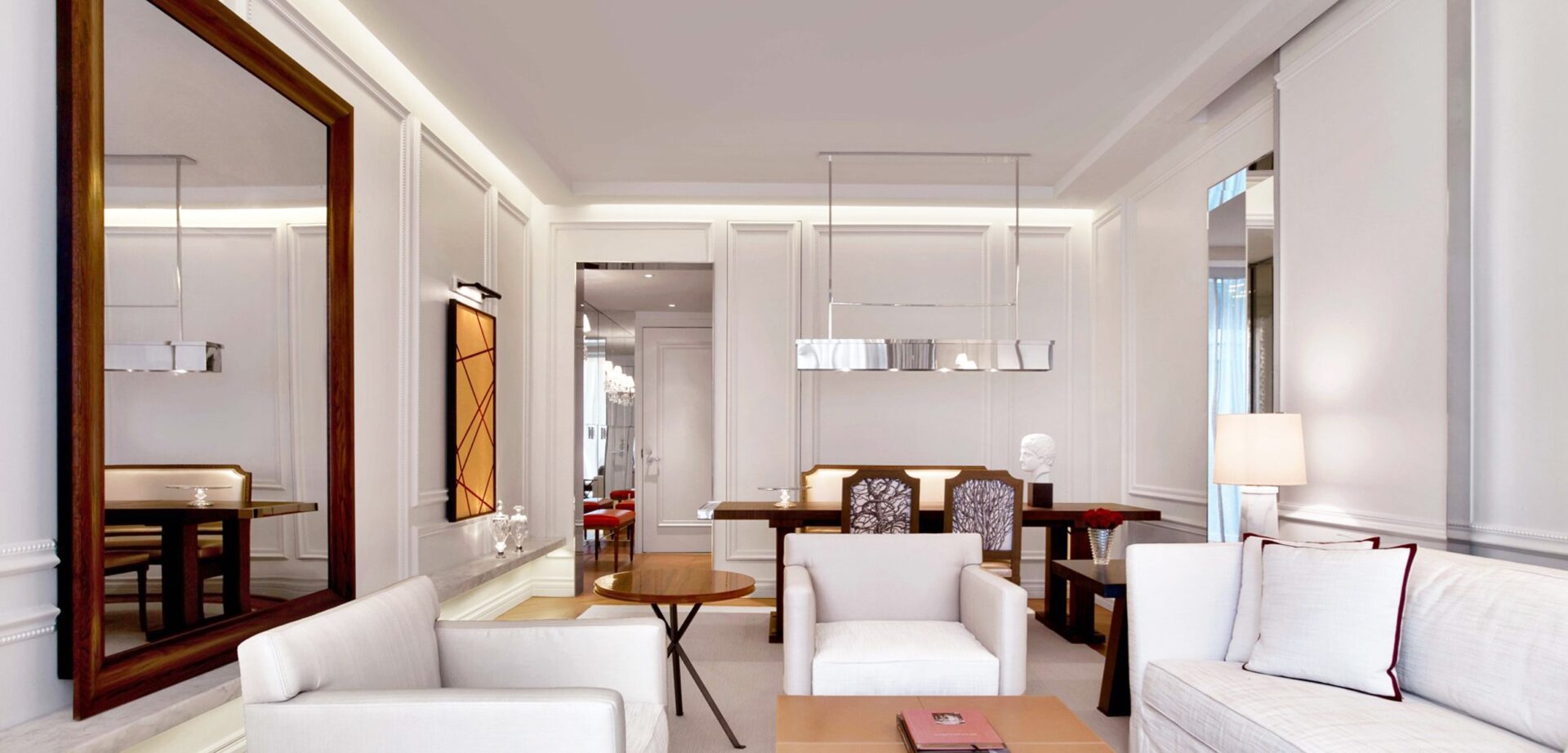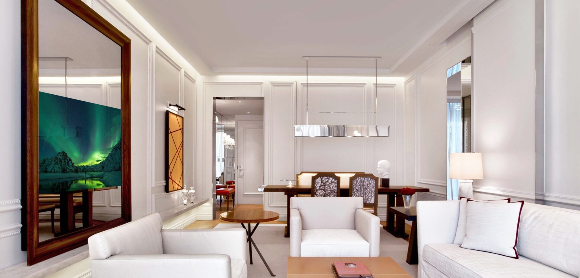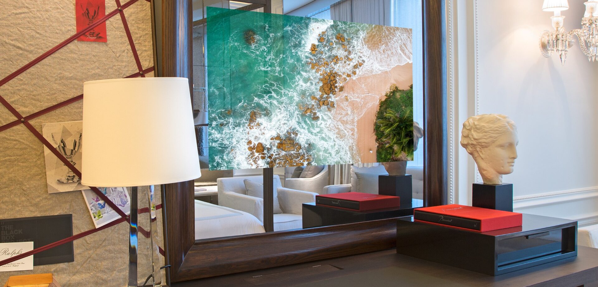 Baccarat Hotel Suite with Mirror TV in custom mahogany wooden frame