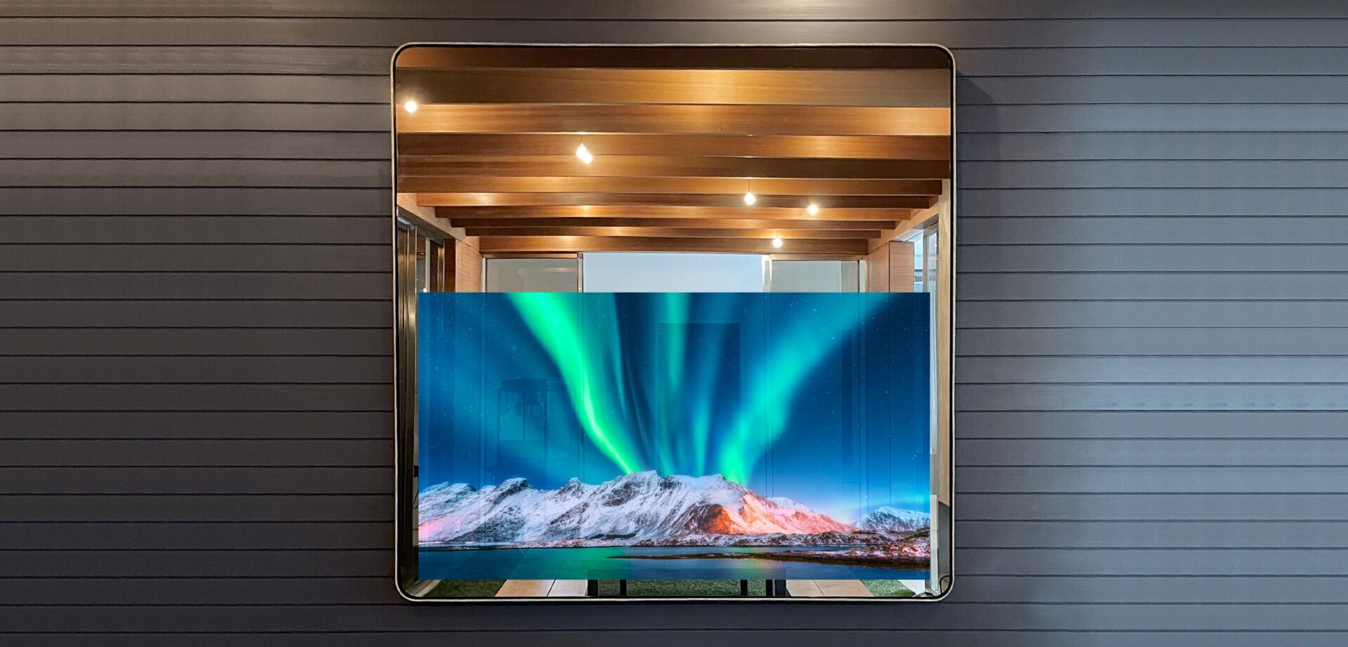 We are proud to showcase the only Contour Mirror Television in the Hamptons! This amazing Reflectel in Crescendo Designs’ Southampton location is a 65” Rounded Corner Square Orientation Mirrored TV. It has a stunning custom faux finished frame. Crescendo prizes top quality workmanship and offers the best of design-build products to their clients.