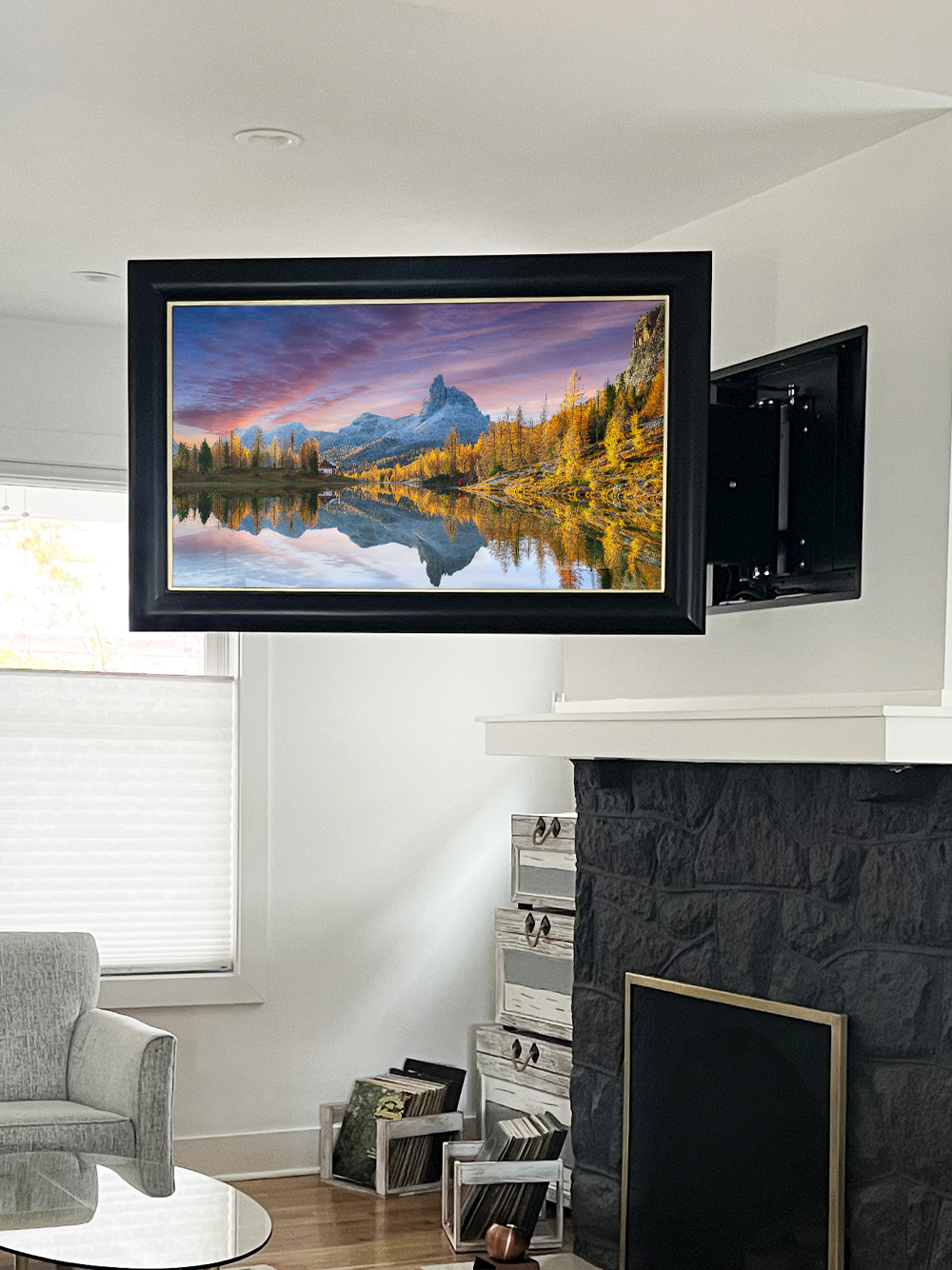 Want to view your mirrored TV frame at an angle? No problem! Our production team will assist to show you a before and after in your space. Additionally, our production team will work with you for the most aesthetically pleased result.