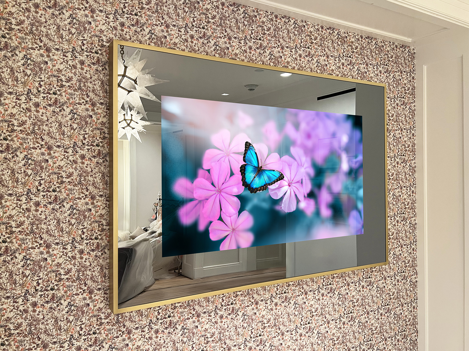 - Bespoke TV Frames: Hand-finished Gilded, Italian Leather, Brushed Metal, Solid Wood, and more premium Mirror TV frame finishes