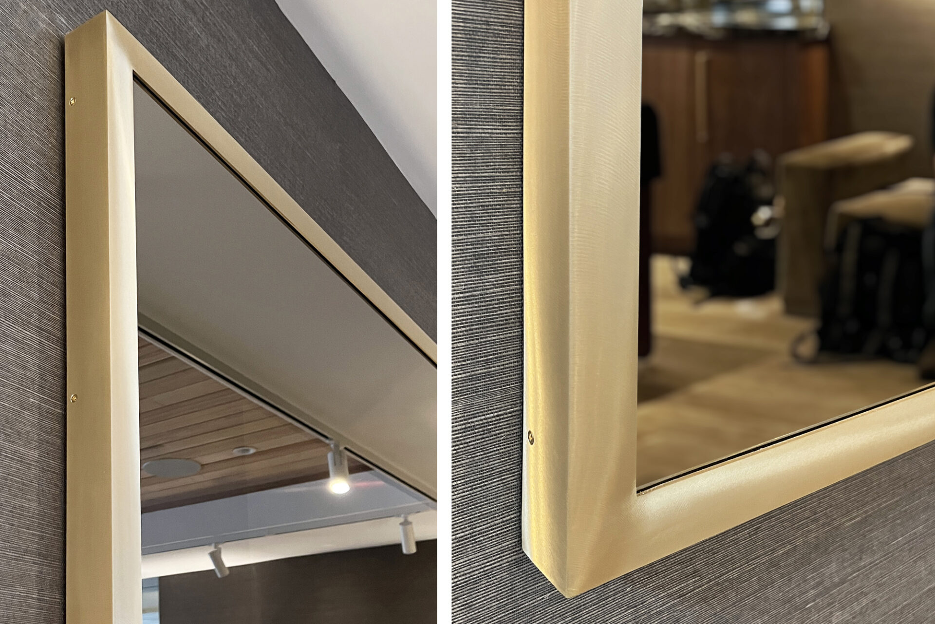 Bronze specialty metal frame in a flat profile.